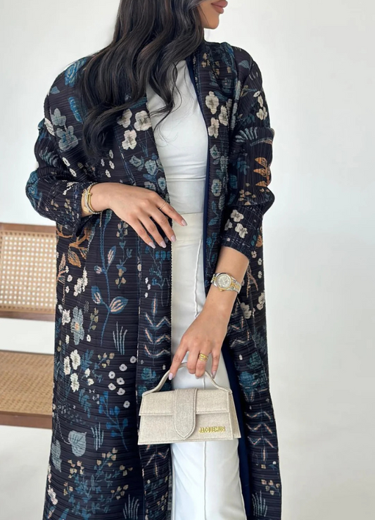 Blue abaya and blue abaya with embellishment offer a modern take on modest fashion, combining boldness with artistic charm.