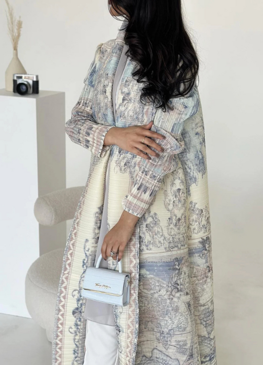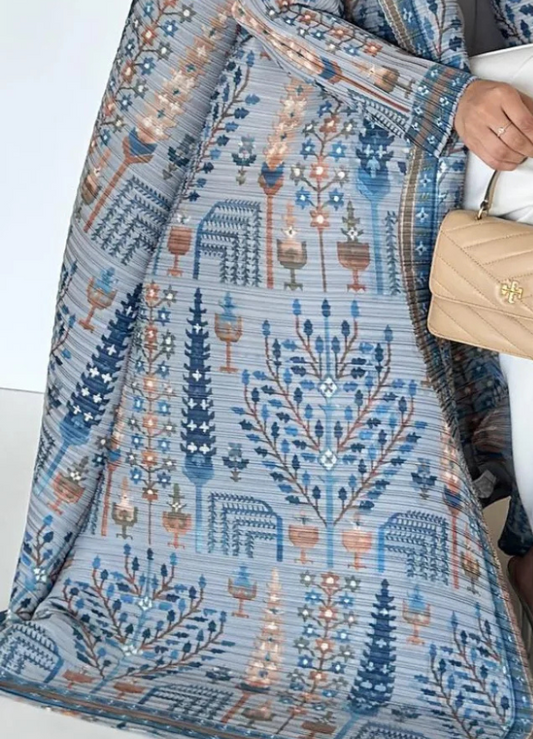 The soft hues of a light blue abaya exude calm and serenity, making it an ideal choice for daytime elegance. Its soothing color complements the textured feel of Nida Zoom fabric, offering a fresh and breezy look with a luxurious finish.